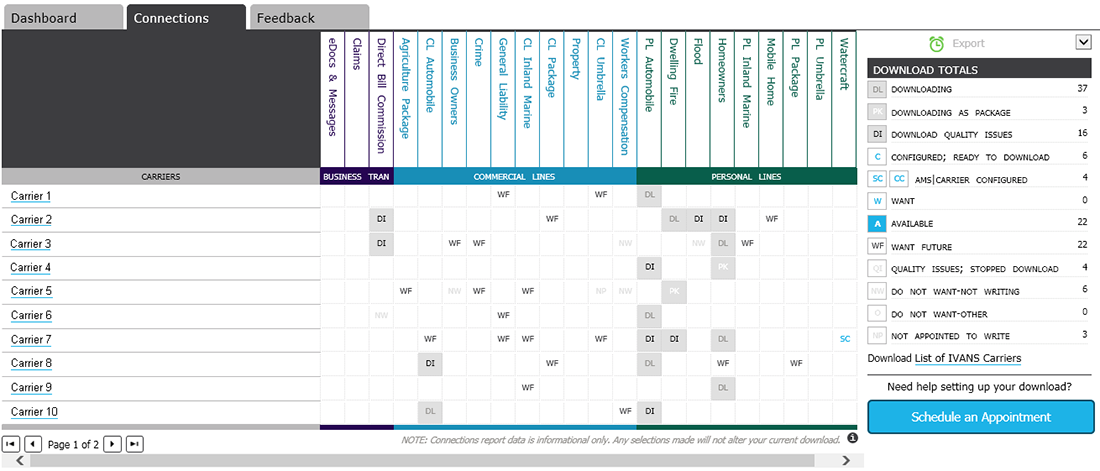 Your carrier partners that download with IVANS are listed down the left,